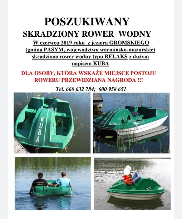 środkw komunikacji elektronicznej oraz telekomunikacyjnych urządzeń końcowych w celu przesyłania mi informacji handlowych oraz prowadzenia marketingu np. Zamwienie musi być potwierdzone E-mailem liststarejablonkipl lub SMS kom. Wypożyczalnia sprzętu wodnego Rower wodny 4 osobowy - 18 zł za godzinę.
